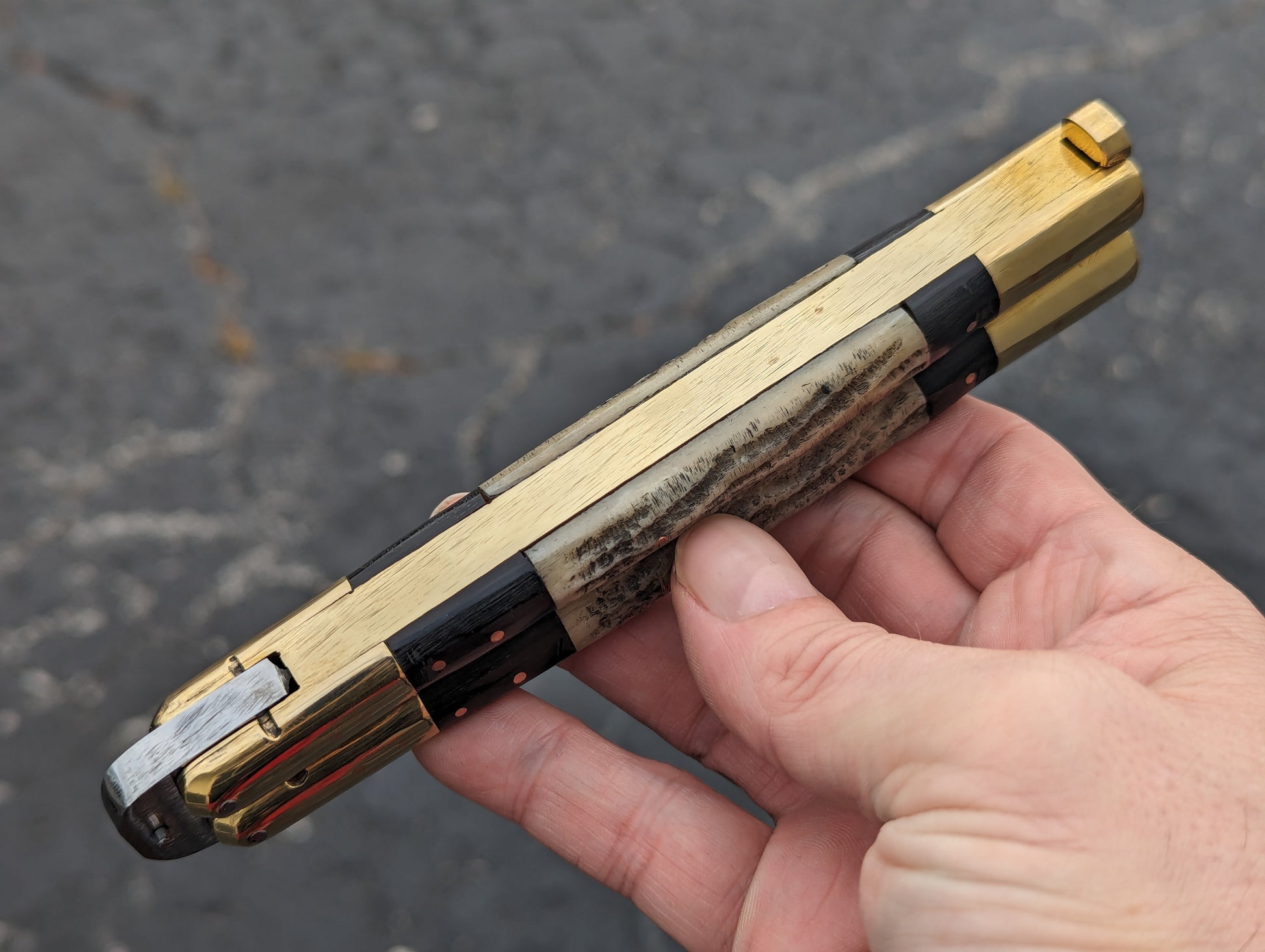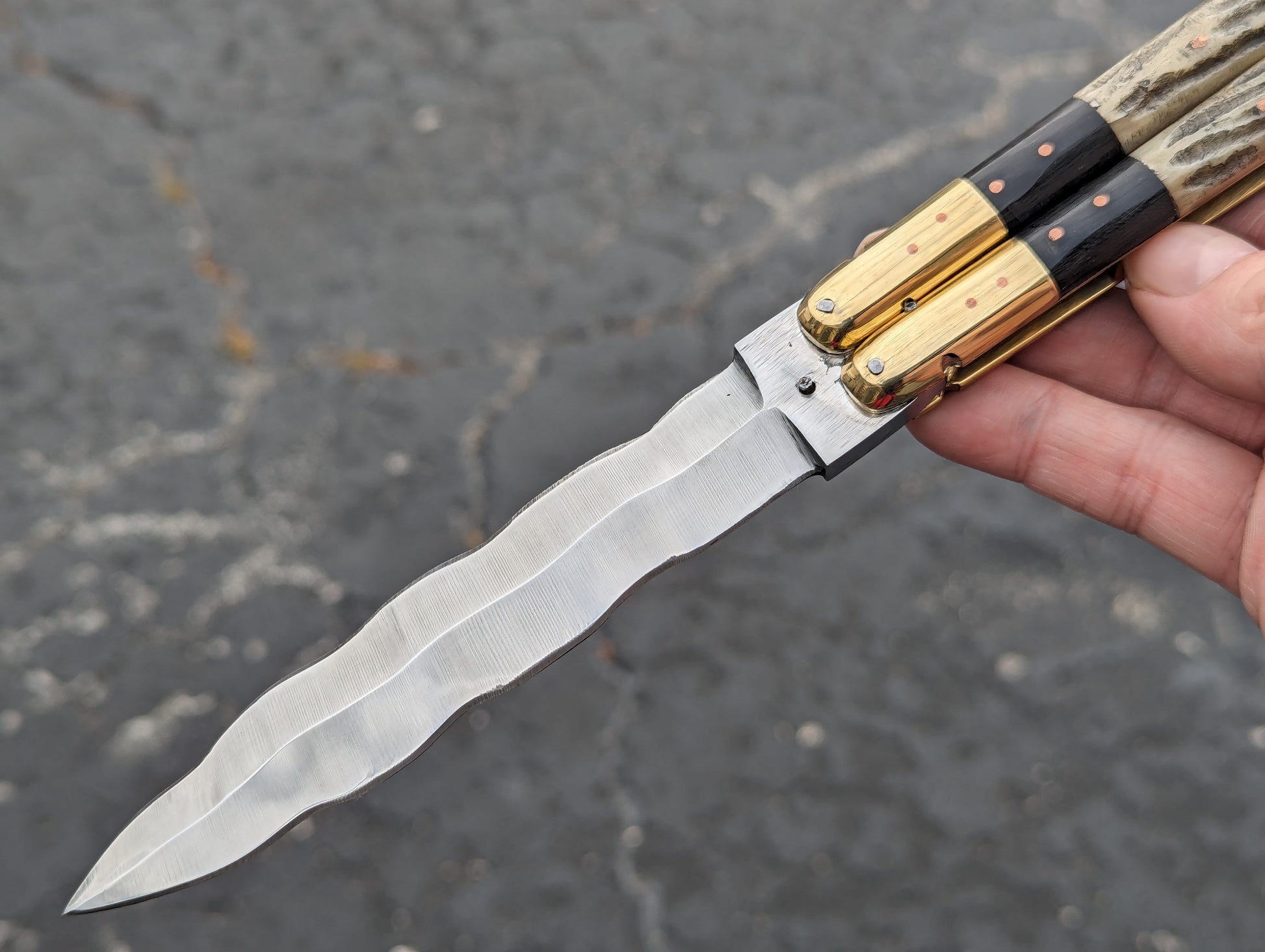 11" FHM 2-TONE STAG/ BONE BRASS BALISONG KRIS BLADE