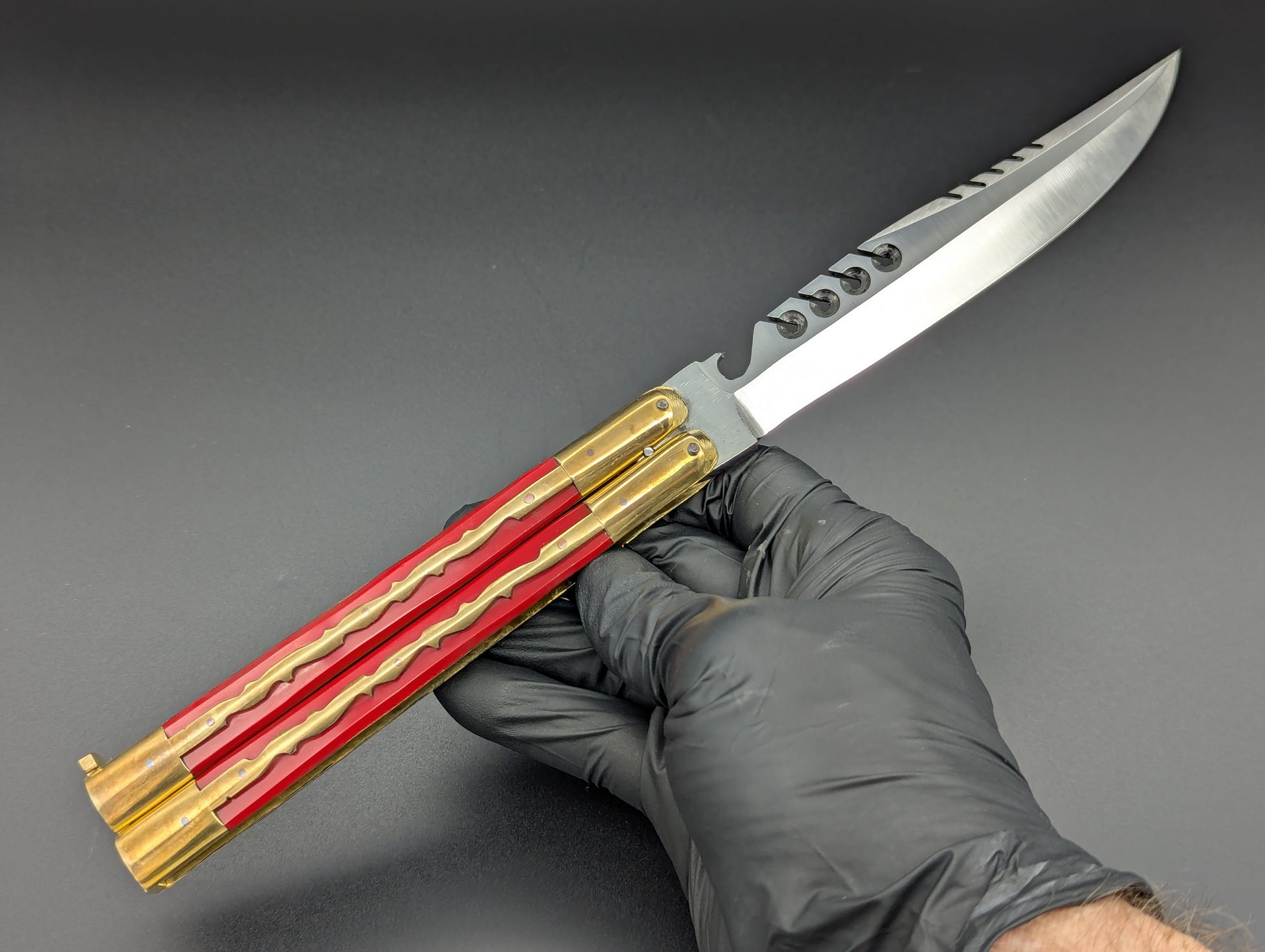 11" KALAPKUP BRASS/ RED RAMBO BOTTLE OPENER FHM BALISONG
