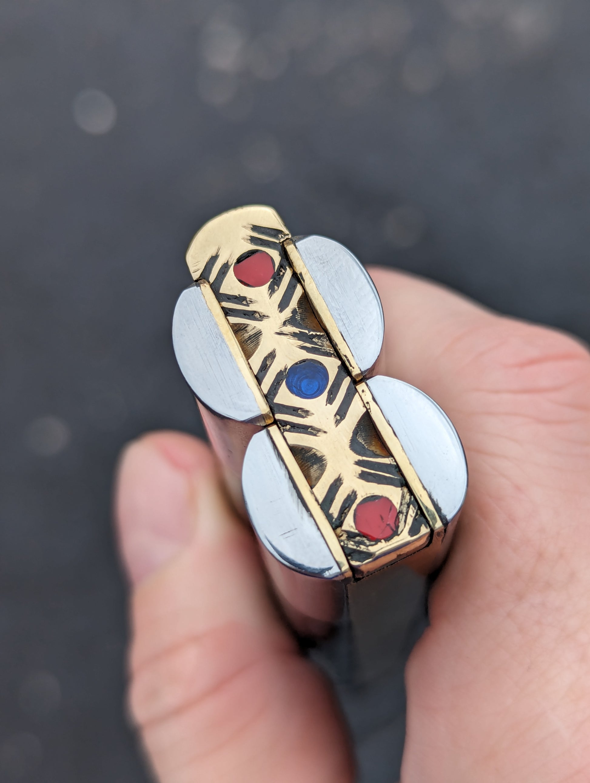 BEAUTIFUL HANDMADE PHILIPPINES BALISONG. INCREDIBLE STAINLESS & BRASS WITH BLACK HORN SCALES. INSANE BLADE GRIND! THESE ARE MADE AS FOLDING KNIVES. THE HANDLES FOLD OVER TO COVER THE BLADE INITIALLY. BUT THEY WILL LOOSEN IN TIME AND BE ABLE TO "FLIP" LIKE THE BUTTERFLY KNIVES WE HAVE COME TO KNOW