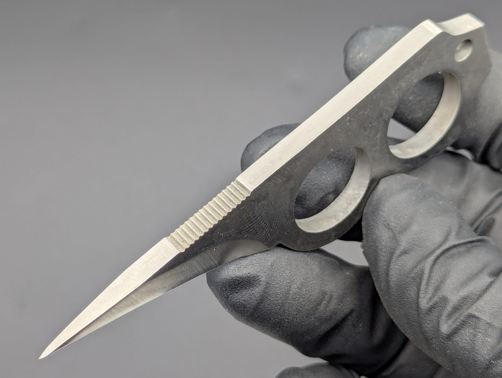 MINI 4" HARDENED STAINLESS STEEL NECK KNIFE INCLUDES ABS NECK SHEATH WITH LONG STEEL BEAD CHAIN. OVERALL LENGTH 4" BLADE 1 5/8"