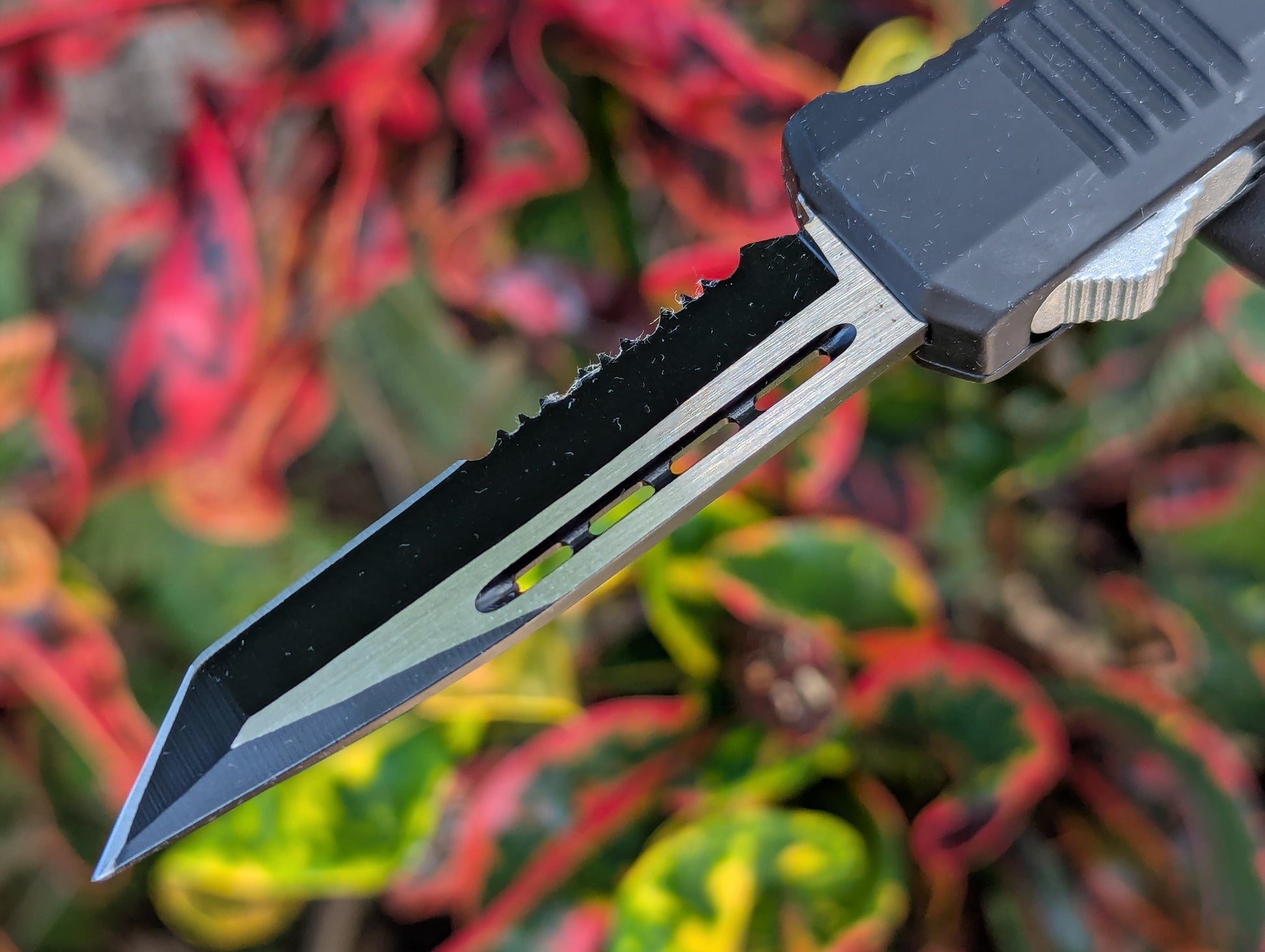 7" Black Mini Tanto Serrated D/A OTF Knife