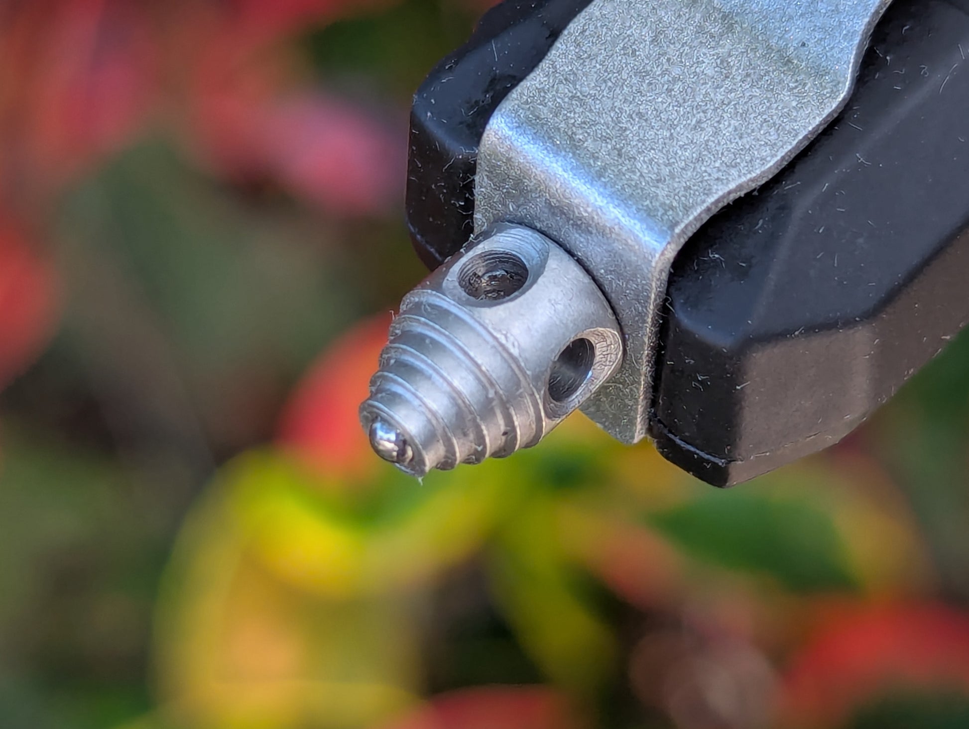 MINI 2-TONE TANTO PARTIALLY SERRATED DUAL ACTION OTF KNIVES WITH BLACK FINISHED HANDLES. SPRING STEEL POCKET CLIP. TUNGSTEN CARBIDE GLASS BREAKER ATTACHMENT. 7" OL 2.75" BL