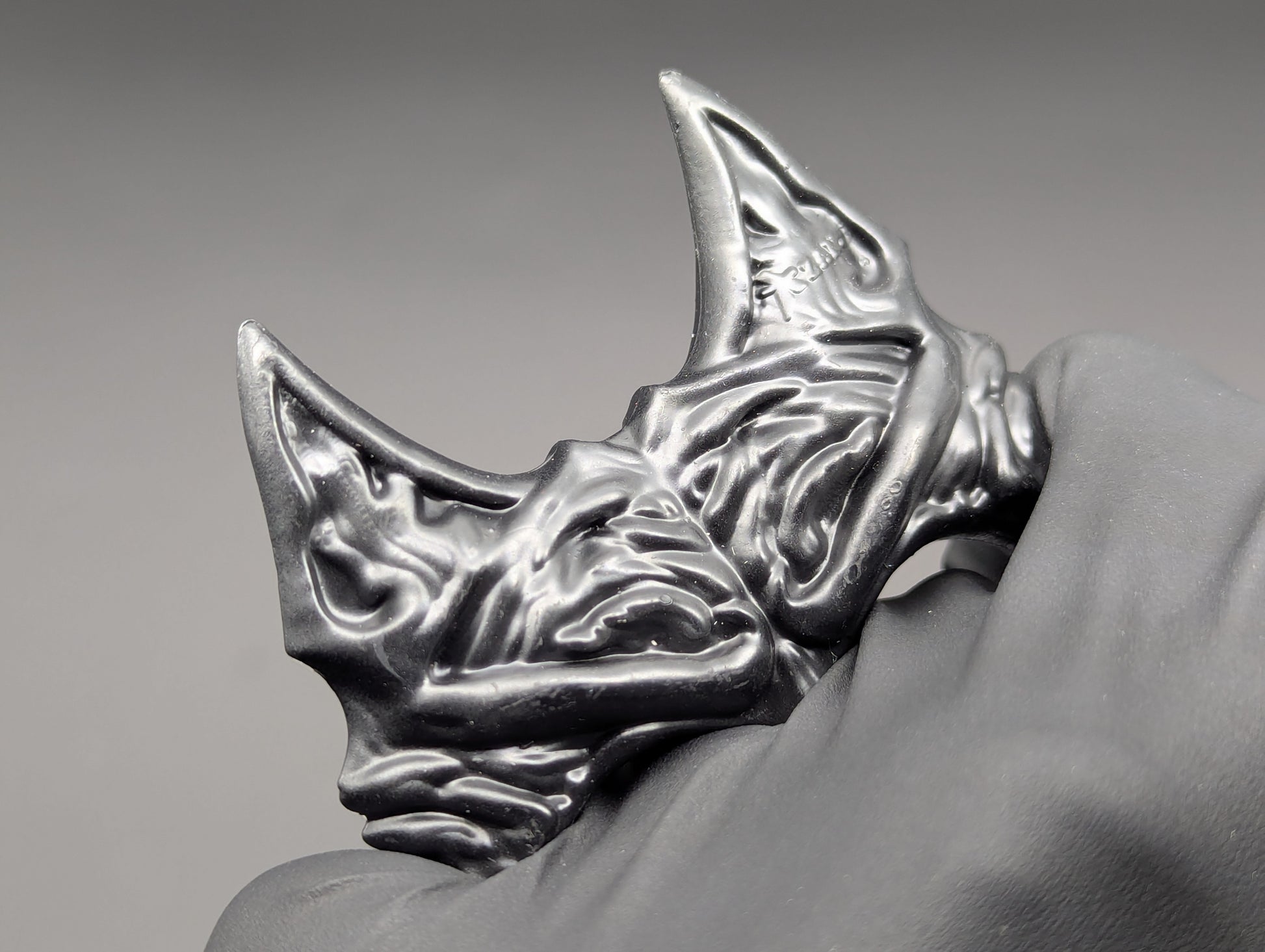 BLACK FINISHED WEREWOLF SELF DEFENSE CHARM AND KEYRING ATTACHMENT. MADE OF ABS IMPACT RESISTANT MOLDED PLASTIC. JUST PLACE YOUR FINGERS THROUGH THE WEREWOLF'S "EYES" FOR A GOOD GRIP. VERY HEAVY DUTY DURABLE CONSTRUCTION