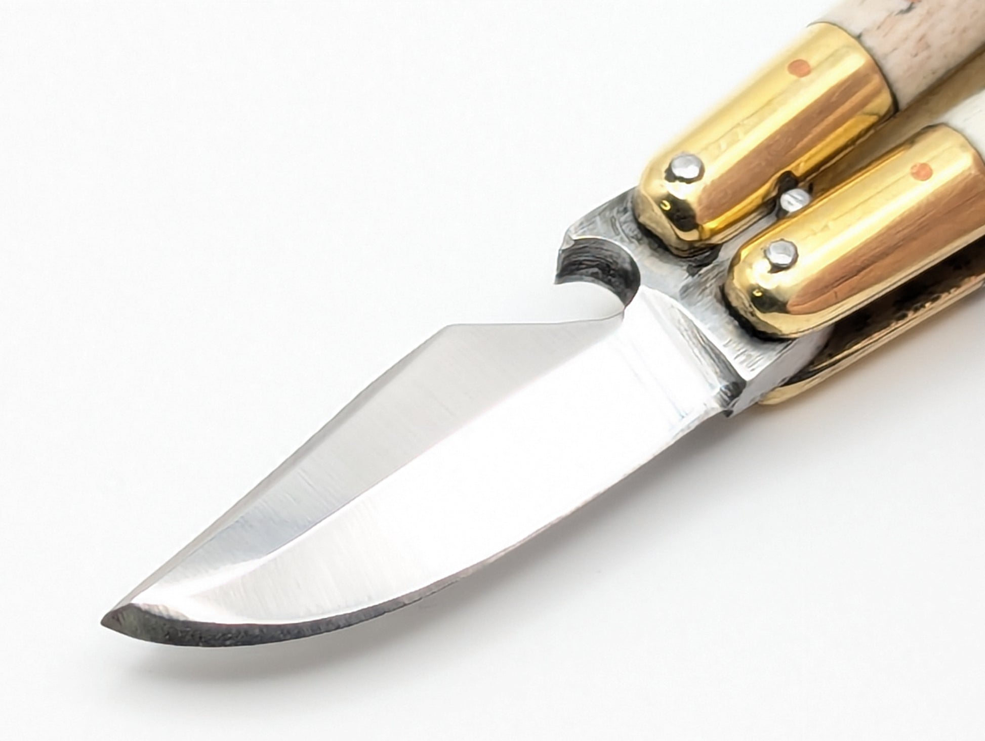 THESE WERE JUST MADE TO ORDER IN THE HEART OF BATANGAS PHILIPPINES. MINION II BOTTLE OPENER BALISONG KNIVES. INCREDIBLE LITTLE WORKS OF ART THAT ARE COMPLETELY FUNCTIONAL. ALL SOLID BRASS HANDLE CONSTRUCTION WITH WHITE BONE SCALES ( MAY VARY AS ORGANIC SCALES ARE NEVER THE SAME ) BLADE FEATURES A FUNCTIONAL BOTTLE OPENER CUTOUT. OVERALL LENGTH 4.25"