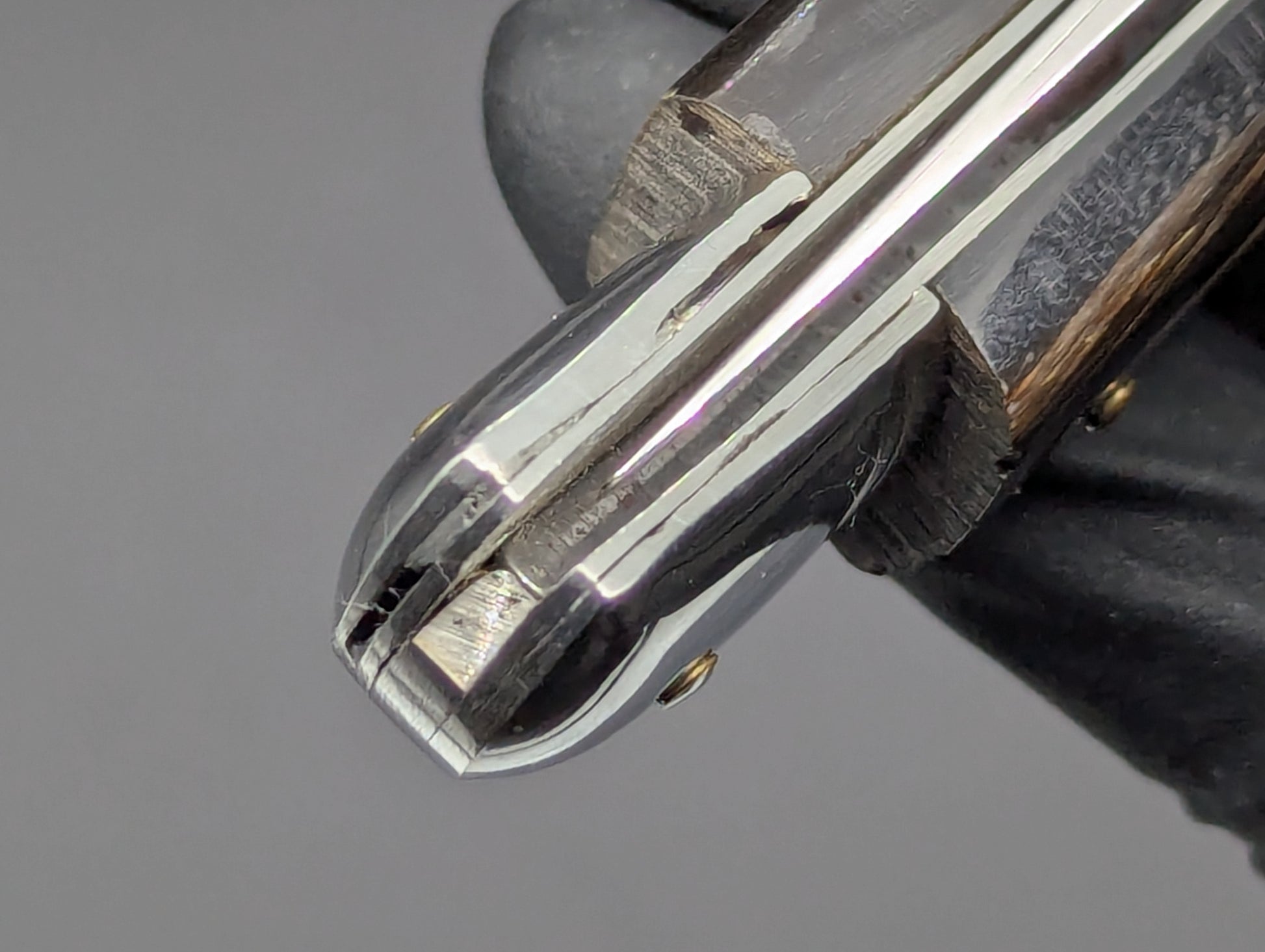 BEAUTIFUL VINTAGE HANDMADE ITALIAN SHOT SHELL PULLER. AUTOMATIC OPENING LEVERLOCK SWITCHBLADE KNIFE. BEAUTIFUL DARK BUFFALO HORN SCALES. ALL STAINLESS STEEL CONSTRUCTION. BLADE SITS DEEP WHEN CLOSED. SPRING IS POWERFUL WITH A POSITIVE LOCKUP EVERY TIME IT'S OPENED! CLIP POINT STYLE BLADE. TANG STAMP: INOX 8.25" OL 3.25" BL