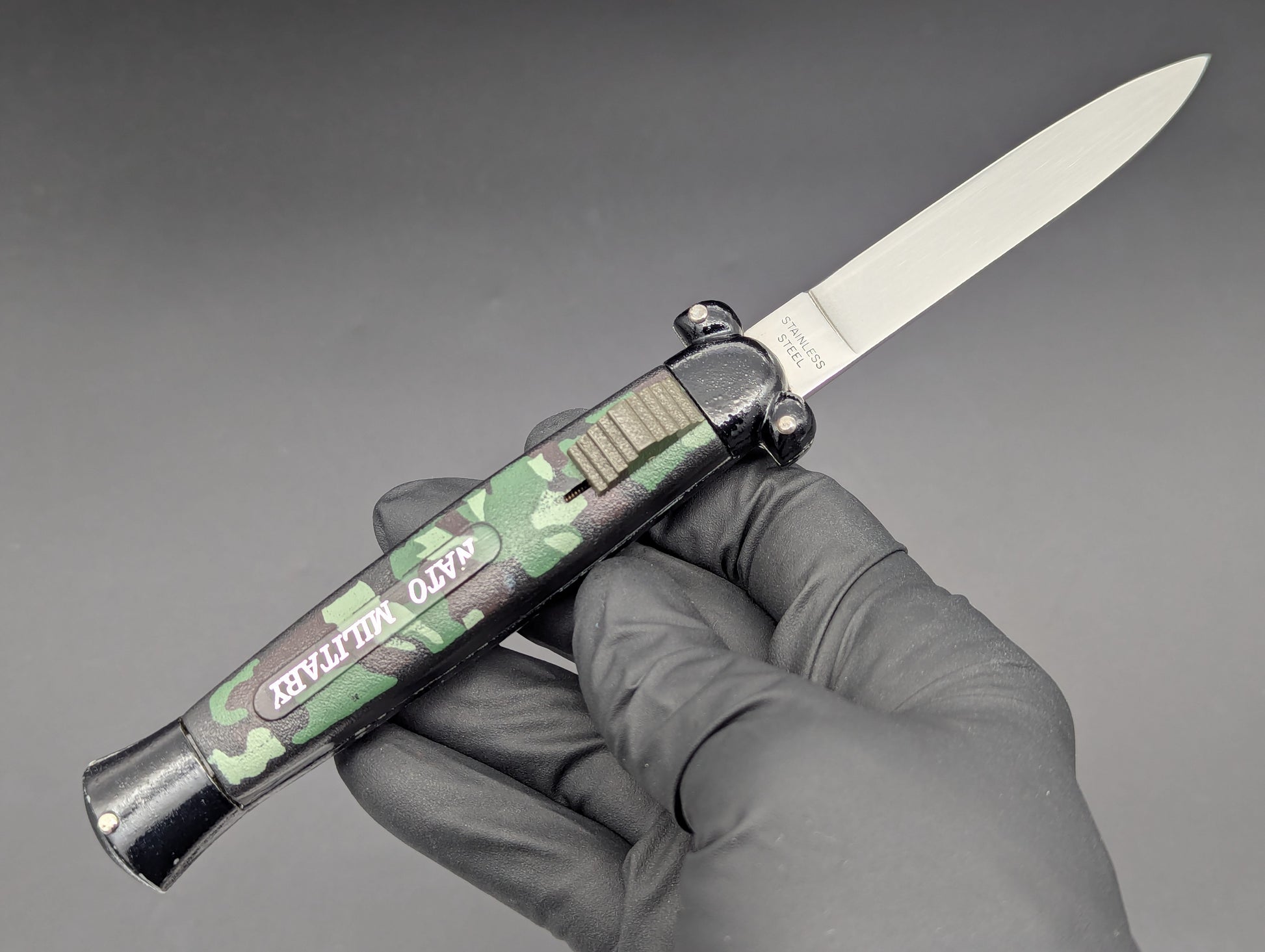 VINTAGE KOREAN NATO MILITARY OTF KNIFE 3 PIN CAMO